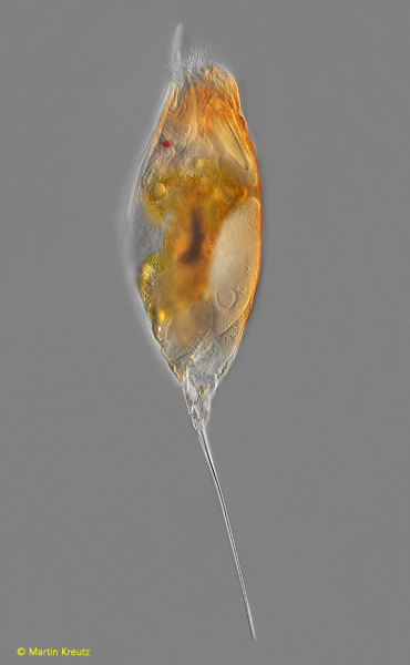 I find Heteronema trispira comparatively rarely. So far, all specimens have come from the uppermost mud layer in the Simmelried. In rare cases, Heteronema trispira also settles on the floating coverslip.