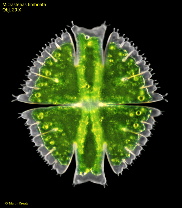 Fig. 3:Micrasteria fimbriata. L = 242 µm. A specimen in dark field illumination. Obj. 20 X.
